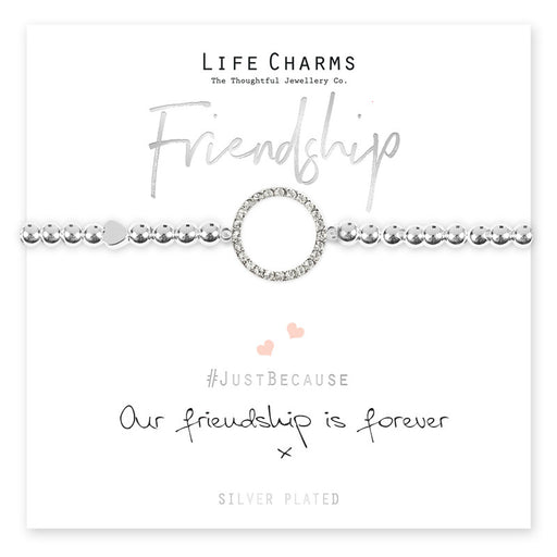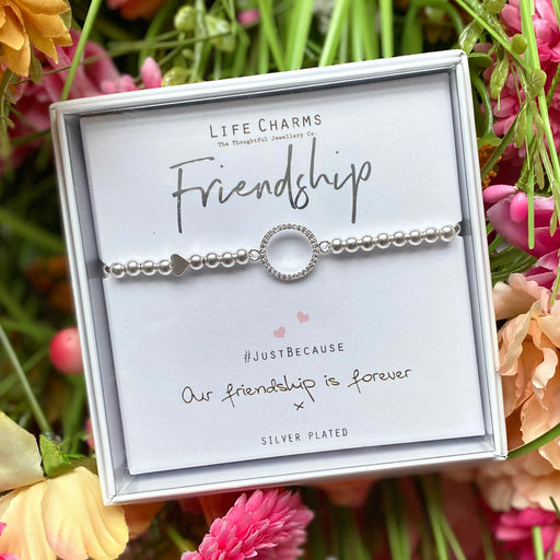 Original price £15.99 - Original price £15.99Original price£15.99£15.99 - £15.99Current price £15.99Silver-plated 5mm beaded stretch bracelet with a diamante circle charm. Presented in a luxury gift box, it comes attached to an "Our friendship i...