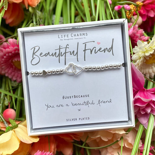 Original price £15.99 - Original price £15.99Original price£15.99£15.99 - £15.99Current price £15.99Silver-plated 5mm beaded stretch bracelet with interlocking heart charms. Presented in a luxury gift box, it comes attached to a "You are a beaut...