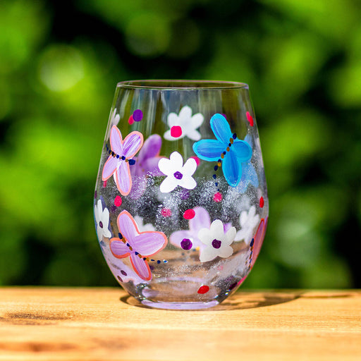 Hand Painted Stemless Tumbler by Lynsey Johnstone - Butterflies & Busy Lizzies